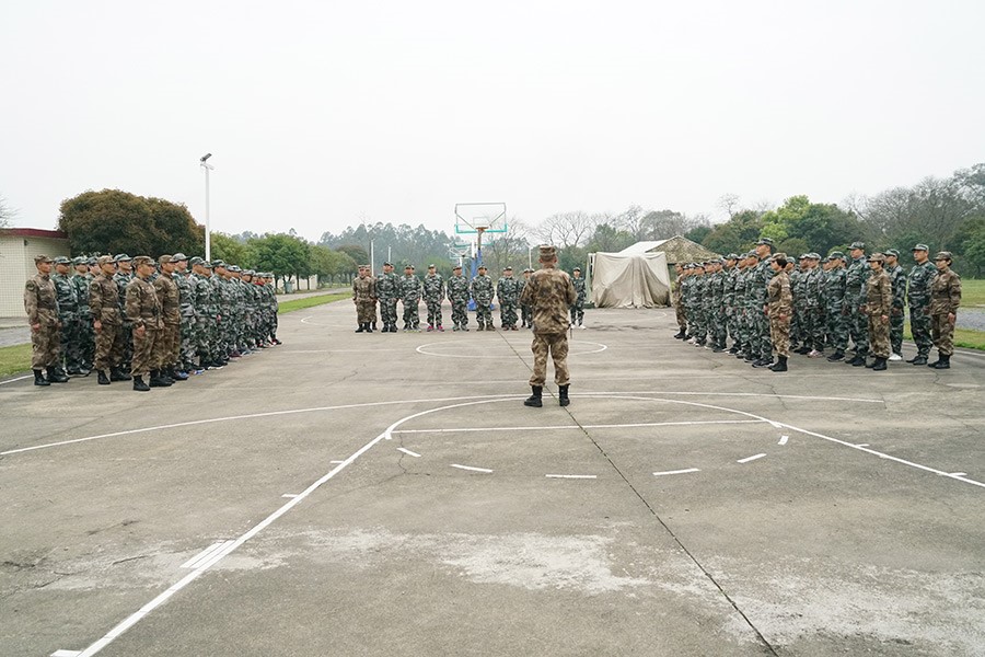 抵達(dá)訓(xùn)練場地后,全體人員換上迷彩服,拉開了一天封閉軍訓(xùn)的序幕。