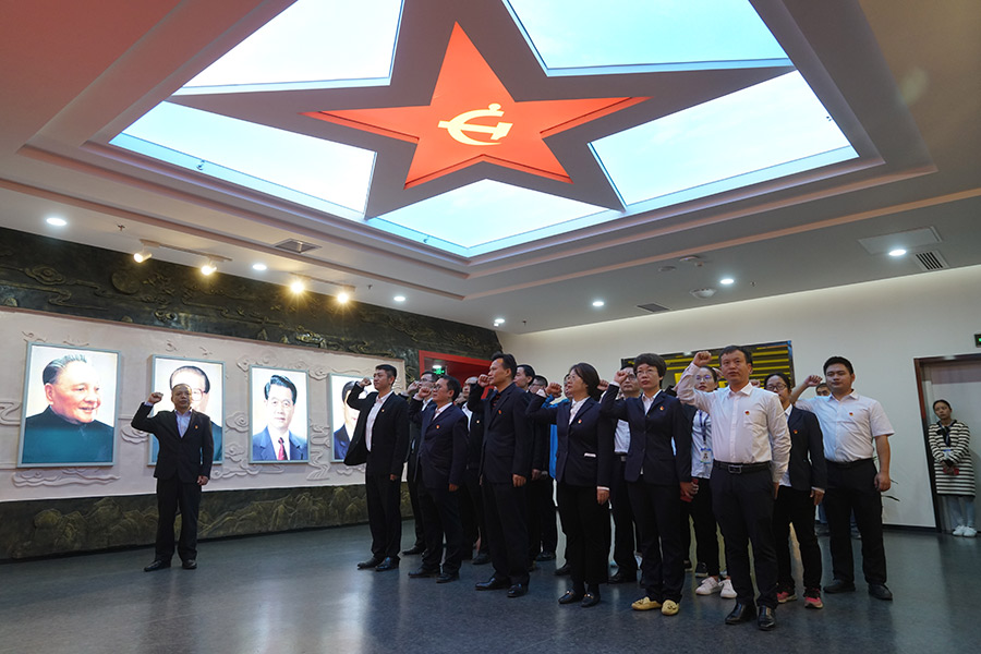 活動當(dāng)天,大家參觀了位于新城投資集團(tuán)辦公大樓一、二樓的桂林市黨群服務(wù)中心。講解員為黨員們一一講解了中心的定位、功能及各展區(qū)的內(nèi)容,黨員們認(rèn)真聆聽講解員的講解,依次參觀了桂林市黨員志愿者服務(wù)總站、黨群業(yè)務(wù)受理區(qū)和黨組織活動區(qū)等展廳。體驗了“健康小屋”“城市書吧”“i游桂林”“時光隧道”“微笑墻”“非遺文化屋”“紅色影院”“電子翻書”等功能設(shè)施。通過觀看3D幻影成像《湘江戰(zhàn)役》和微電影《廖俊波》,真切感受了先輩們踐行初心拋頭顱、灑熱血的壯舉及廖俊波同志對黨忠誠、無私奉獻(xiàn)的高尚品質(zhì)。在以湘江戰(zhàn)役為歷史背景而制作的雕塑前,全體黨員合唱《國際歌》《中華人民共和國國歌》,重溫入黨誓詞。