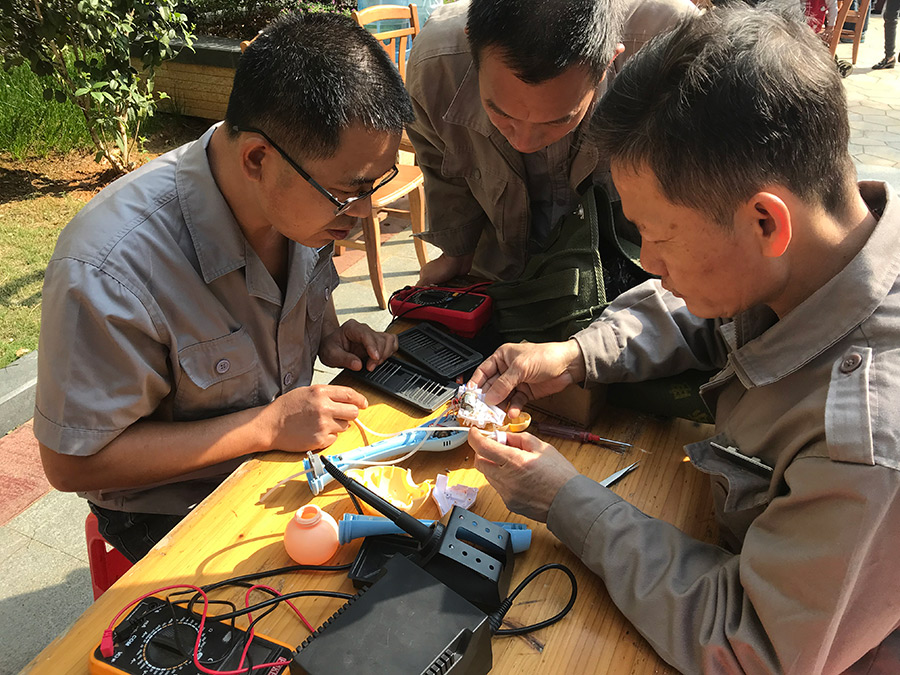 新城投資集團(tuán)黨員志愿者們在現(xiàn)場開展“便民服務(wù)進(jìn)社區(qū)”活動,對居民送來的家電進(jìn)行故障診斷和免費(fèi)維修,各種飲水機(jī)、豆?jié){機(jī)、電飯煲、電水壺等小家電在志愿者手中紛紛運(yùn)轉(zhuǎn)起來,志愿者們認(rèn)真負(fù)責(zé)的態(tài)度和專業(yè)的維修技能獲得了居民們的一致好評。