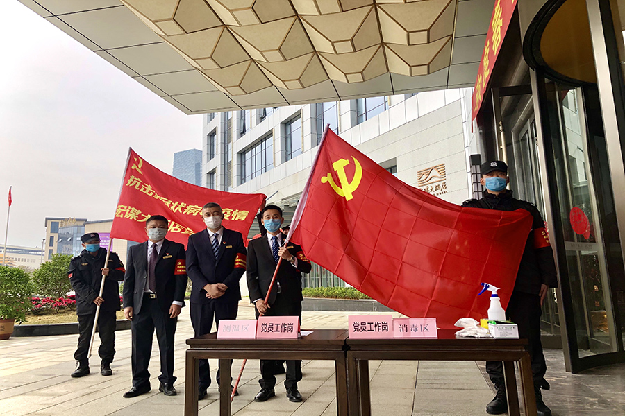 宏謀物業(yè)在防控第一時(shí)間成立了黨員突擊隊(duì),在國(guó)惠村黨員示范崗、市民廣場(chǎng)黨員示范區(qū)、游船黨員先鋒號(hào)、客服中心黨員服務(wù)窗口等一線,在“急,難,險(xiǎn),重"等工作面前,黨員同志帶頭靠前,充分發(fā)揮黨員的先鋒模范作用,履行共產(chǎn)黨員的光榮職責(zé)。