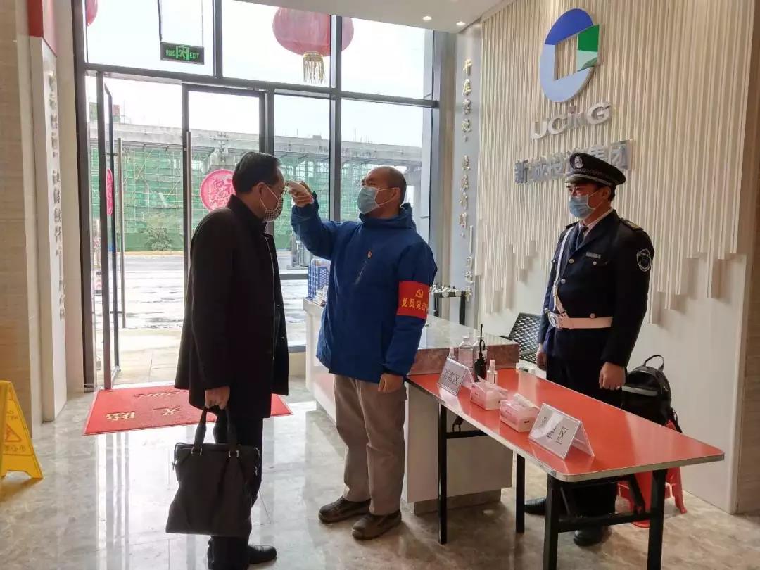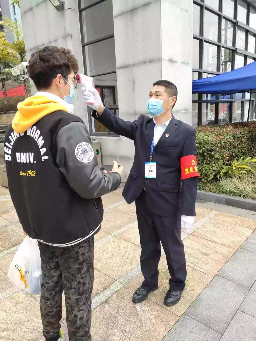▲疫情防控崗在為進入辦公樓人員測體溫。