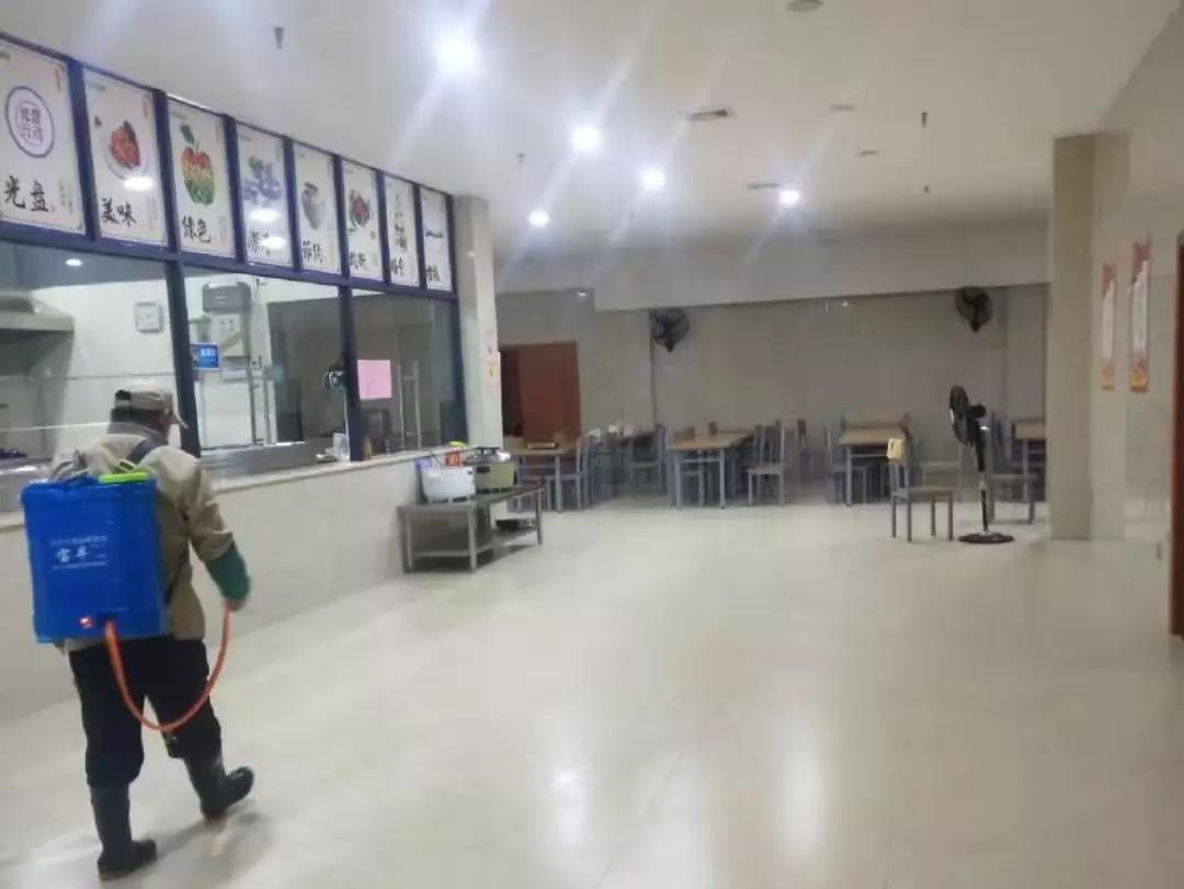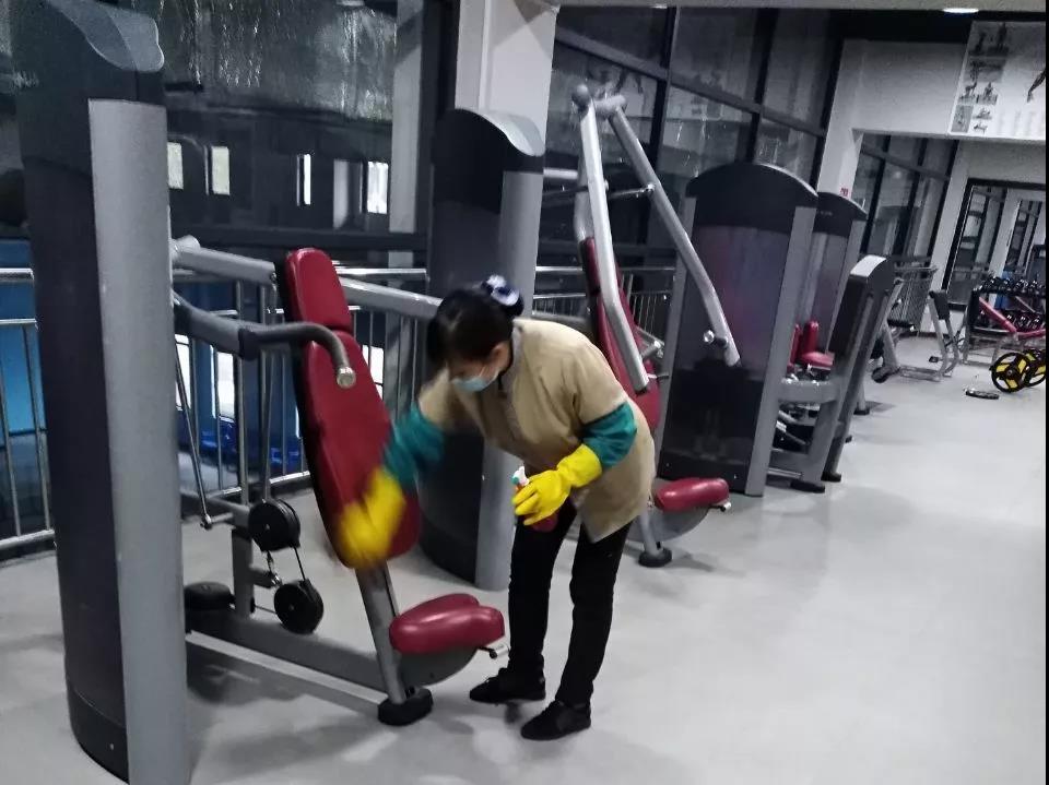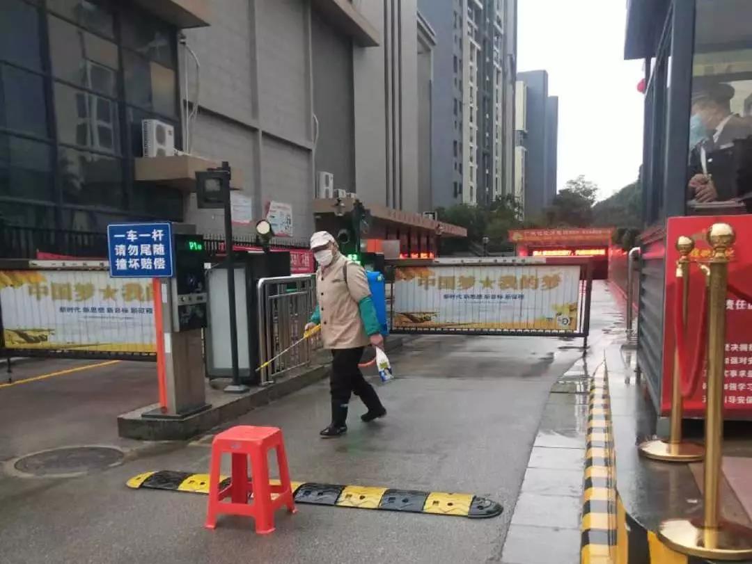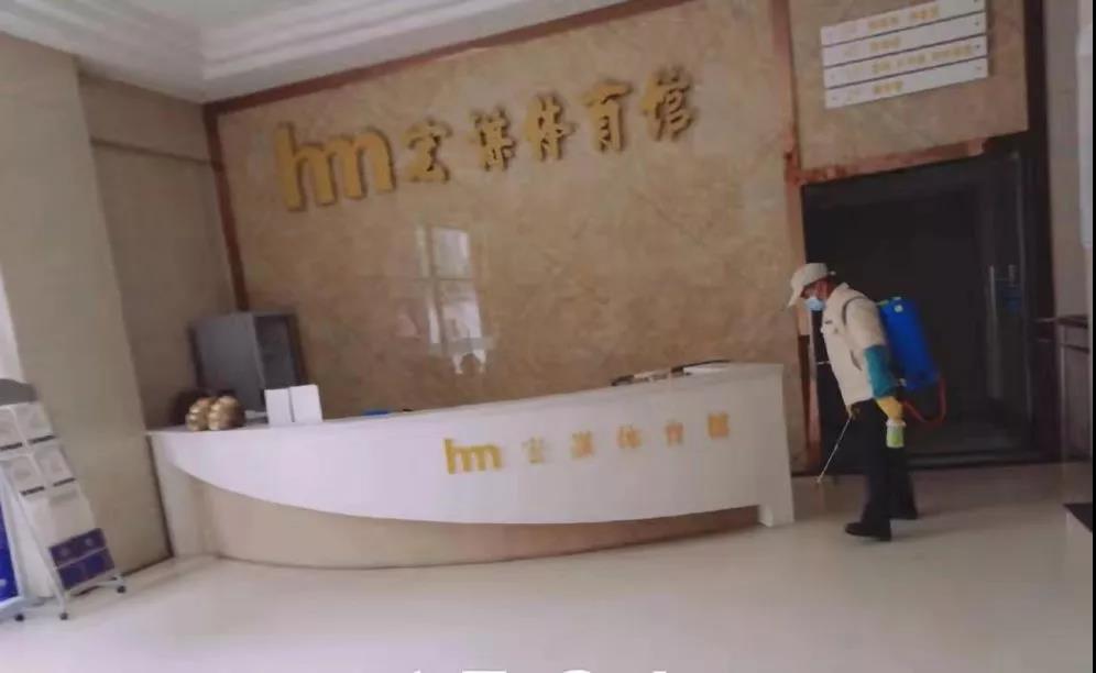 ▲保潔人員分別對物業(yè)中心、員工食堂、小區(qū)門崗、宏謀體育館等區(qū)位進行全面消毒。