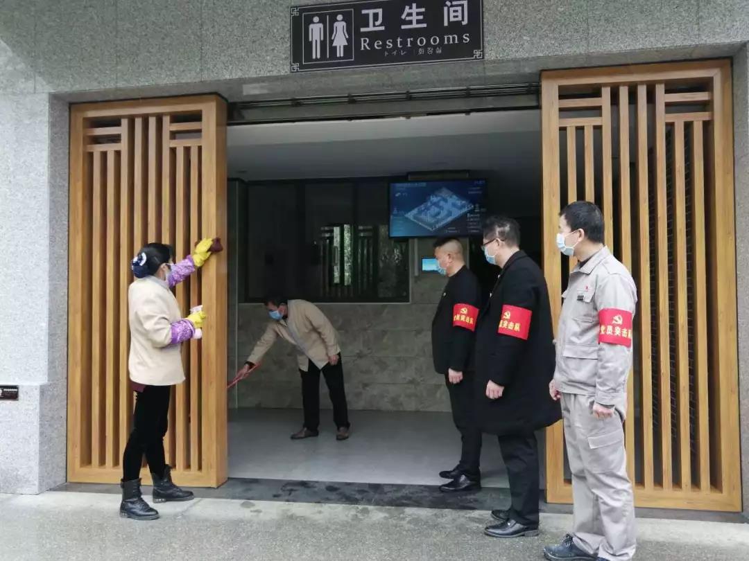 ▲黨員突擊隊成員趙劍波、周成組織相關人員對景區(qū)的防疫工作及安全工作進行檢查。