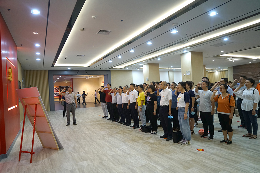 在紀(jì)念館,黨員們仔細(xì)觀看館內(nèi)所陳列的各種珍貴文物、文獻(xiàn)、照片等資料,伴隨著講解員動(dòng)情的解說,大家懷著敬仰的心情默默聆聽,重溫紅色記憶,追尋革命足跡。在趙新明的領(lǐng)誓下,全體黨員重溫入黨誓詞。