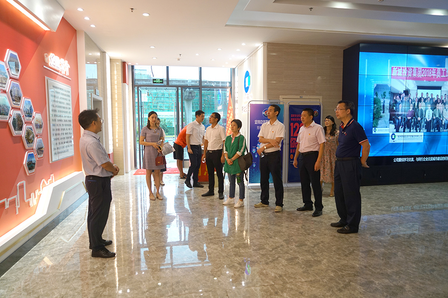 市國(guó)資委黨委委員、副主任藍(lán)譽(yù)國(guó),市國(guó)資委黨建工作科科長(zhǎng)莫素娥,新城投資集團(tuán)黨總支委員薛春秀陪同參觀。