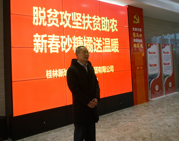 2020年是決勝全面小康、決戰(zhàn)脫貧攻堅(jiān)的收官之年,助力貧困戶,彰顯國企責(zé)任擔(dān)當(dāng)。新城投資集團(tuán)立足小處,積極響應(yīng)桂林市總工會(huì)“關(guān)于組織開展動(dòng)員各基層工會(huì)春節(jié)期間采購扶貧點(diǎn)砂糖橘”號召,把貧困戶疫情期間果子銷售的“大”困難化解為“小”行動(dòng),在扶貧助農(nóng)道路上堅(jiān)定前行。