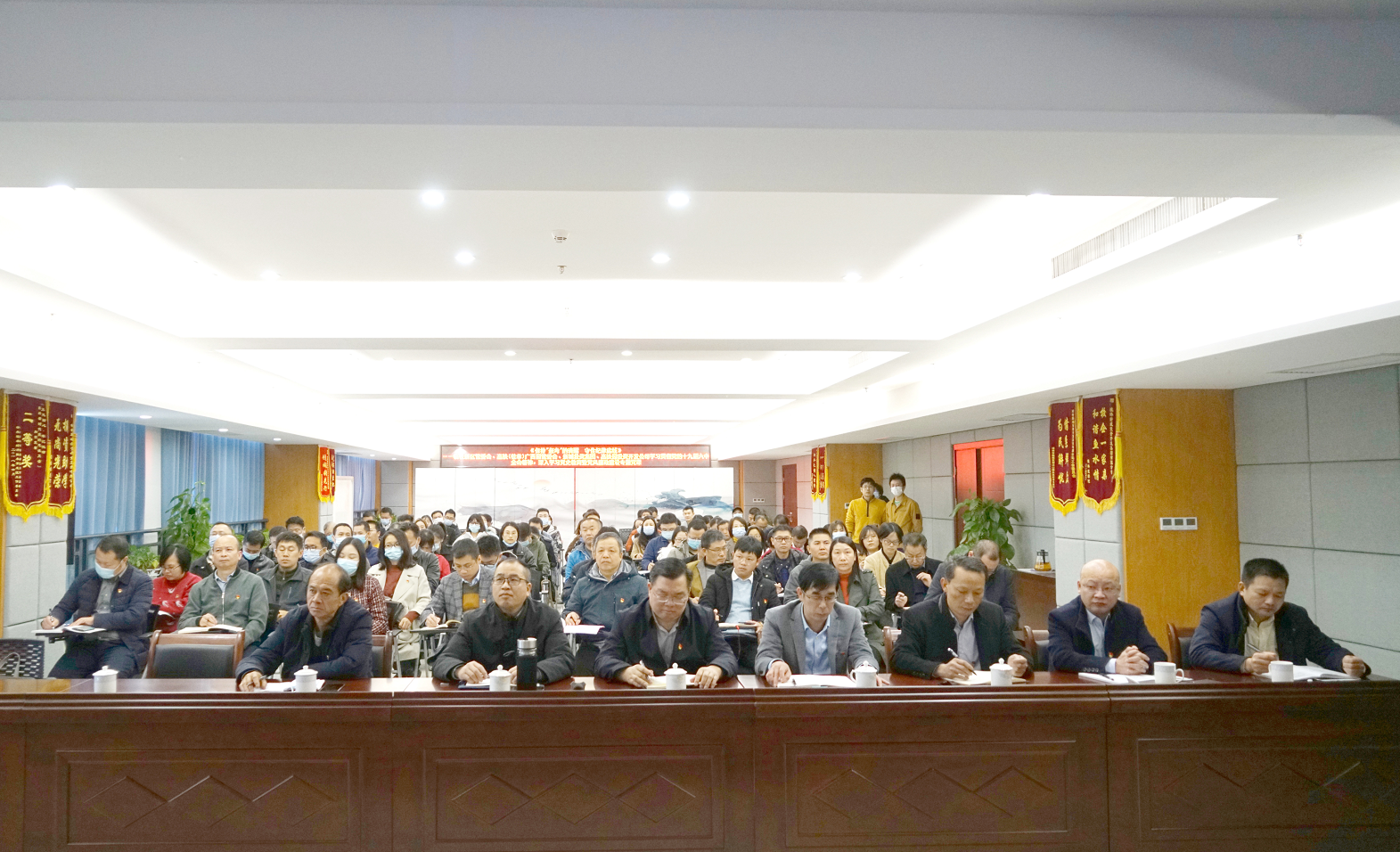 為深入貫徹落實全面從嚴治黨要求,進一步推進黨風廉政建設和反腐敗工作深入開展,增強黨員干部廉潔自律意識和拒腐防變能力,11月25日,市紀委監(jiān)察委駐臨桂新區(qū)管委會紀檢監(jiān)察組組長、臨桂新區(qū)黨工委委員石安蘭在新城投資集團十樓會議室開展綜合監(jiān)督單位集體廉政談話暨《保持“趕考”的清醒 守住紀律底線》專題黨課。市紀委監(jiān)察委駐臨桂新區(qū)管委會紀檢監(jiān)察組副組長唐良平主持專題黨課。臨桂新區(qū)管委會、高鐵(桂林)廣西園管委會、新城投資集團、高鐵園投資公司等4家單位120多名黨員干部聆聽了黨課。