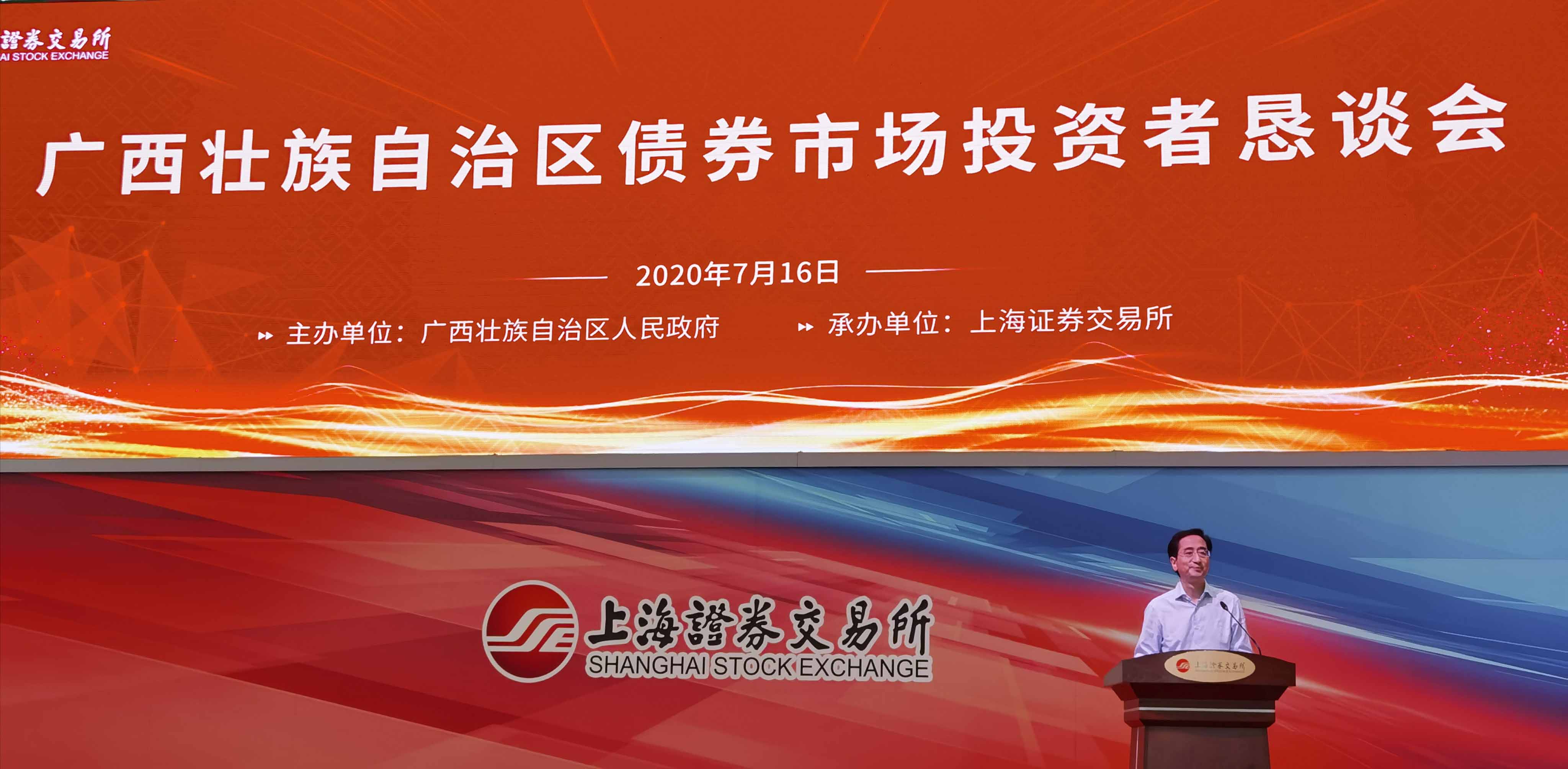 為貫徹落實(shí)《中共中央 國務(wù)院關(guān)于新時(shí)代推進(jìn)西部大開發(fā)形成新格局的指導(dǎo)意見》,提升西部地區(qū)直接融資比例,切實(shí)提升廣西債券融資能力,助推廣西經(jīng)濟(jì)高質(zhì)量發(fā)展,廣西壯族自治區(qū)人民政府于2020年7月16日在上海證券交易所舉辦了廣西壯族自治區(qū)債券市場(chǎng)投資者懇談會(huì)。國泰君安證券、申港證券、交通銀行等國內(nèi)30余家金融機(jī)構(gòu)代表及廣西投資集團(tuán)、北部灣投資集團(tuán)、廣西物質(zhì)集團(tuán)、柳州東城集團(tuán)等20余家廣西區(qū)內(nèi)大型知名企業(yè)參加了本次懇談會(huì)。上海證券交易所黨委書記、理事長(zhǎng)黃紅元(副部長(zhǎng)級(jí))出席會(huì)議,上海證券交易所副副總經(jīng)理劉紹統(tǒng)、廣西區(qū)人大常委會(huì)副主任張曉欽先后致辭發(fā)言,廣西金融監(jiān)管局、廣西財(cái)政廳負(fù)責(zé)人介紹了廣西債券發(fā)行工作情況。