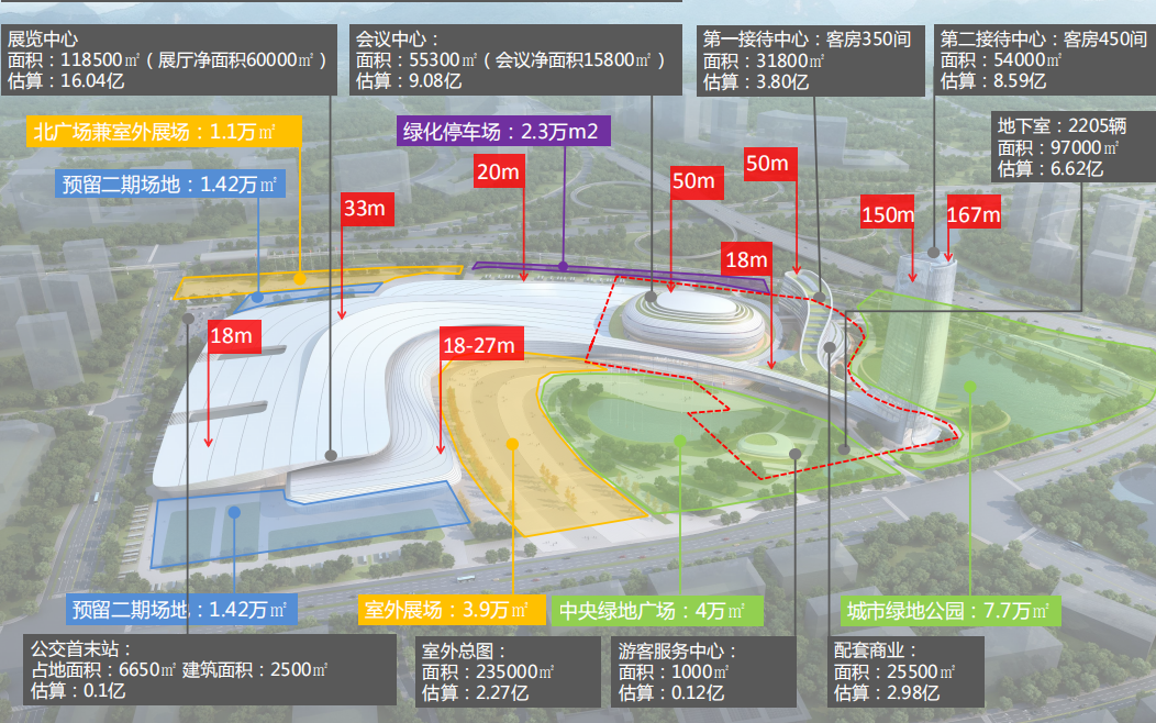 新城投資集團(tuán)全資子公司宏謀會(huì)展公司注冊(cè)資本6億元,重點(diǎn)服務(wù)會(huì)展中心項(xiàng)目建設(shè)。會(huì)展中心估算一期總投資約633438.61萬元,其中一期總投資約 44.5億元,建設(shè)工期從2020年9月至2023年3月。項(xiàng)目建設(shè)規(guī)劃選址在臨桂新區(qū)洋田路以北、三元路以西、機(jī)場(chǎng)路以東地塊。項(xiàng)目總建筑面積400920.93平方米,其中一期總建筑面積310400.76平方米。