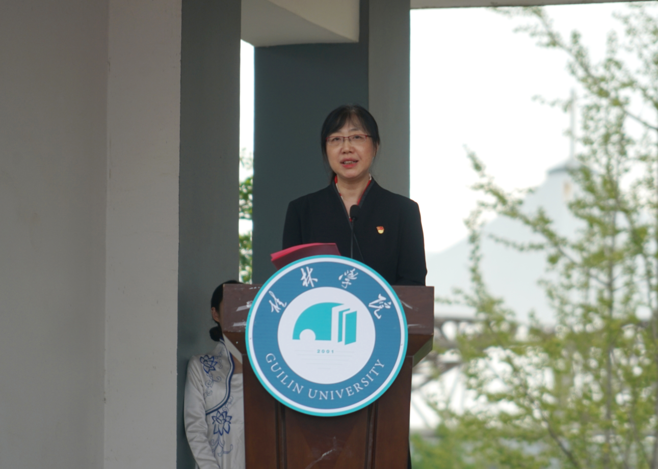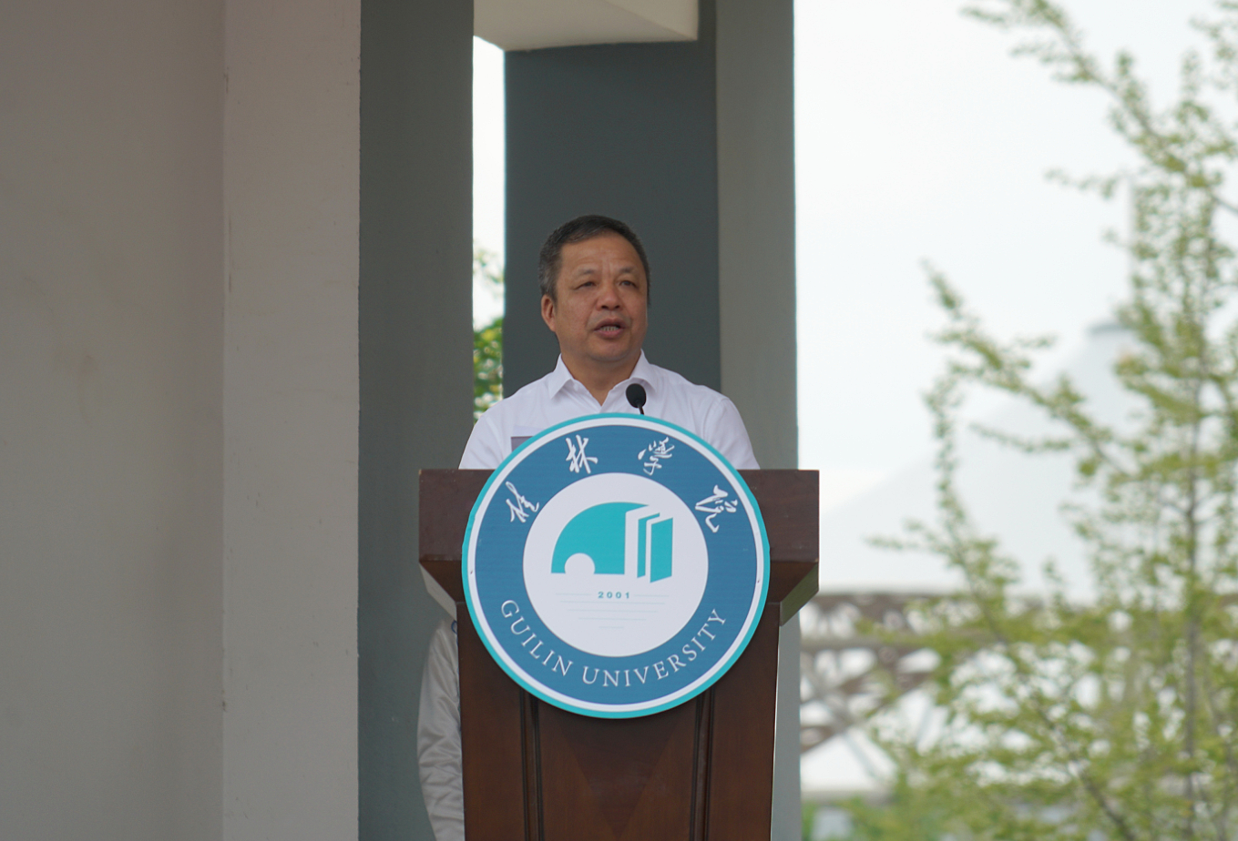 周道林表示,作為桂林學(xué)院的首屆新生,大家是學(xué)校新發(fā)展的見證者和參與者。為了給大家創(chuàng)造更好的學(xué)習(xí)環(huán)境,提供更好的發(fā)展平臺,學(xué)校將認(rèn)真貫徹落實教育部致自治區(qū)人民政府《關(guān)于同意廣西師范大學(xué)漓江學(xué)院轉(zhuǎn)設(shè)為桂林學(xué)院的函》等文件精神,加大辦學(xué)投入,進(jìn)一步完善辦學(xué)條件,按照“做強(qiáng)新文科、壯大新工科、拓展新農(nóng)科和新醫(yī)科”的基本思路,實施“強(qiáng)基礎(chǔ)補(bǔ)短板、重內(nèi)涵提質(zhì)量、育特色樹品牌”戰(zhàn)略,堅定“規(guī)范高效、特色鮮明、質(zhì)量與就業(yè)雙優(yōu)的國有民辦城市大學(xué)”發(fā)展目標(biāo),全面深化教育教學(xué)改革,不斷調(diào)整優(yōu)化學(xué)科專業(yè)結(jié)構(gòu),完善現(xiàn)代大學(xué)內(nèi)部治理體系,提高適應(yīng)區(qū)域經(jīng)濟(jì)社會發(fā)展所需要的應(yīng)用型、技術(shù)技能型人才培養(yǎng)質(zhì)量,加快建成桂林人民滿意的創(chuàng)新大學(xué)、開放大學(xué)、窗口大學(xué)。今年4月,習(xí)近平總書記在桂林考察調(diào)研時,給桂林設(shè)定了打造世界級旅游城市的歷史使命。站在新的歷史起點上,希望大家要始終牢記總書記的囑托,主動將自己的學(xué)習(xí)成長、個人發(fā)展與國家的發(fā)展需求緊密結(jié)合,為國家發(fā)展貢獻(xiàn)自己最大的力量。更多的關(guān)注桂林市的發(fā)展,用自己的所學(xué)所長來為桂林市的建設(shè)添磚加瓦。