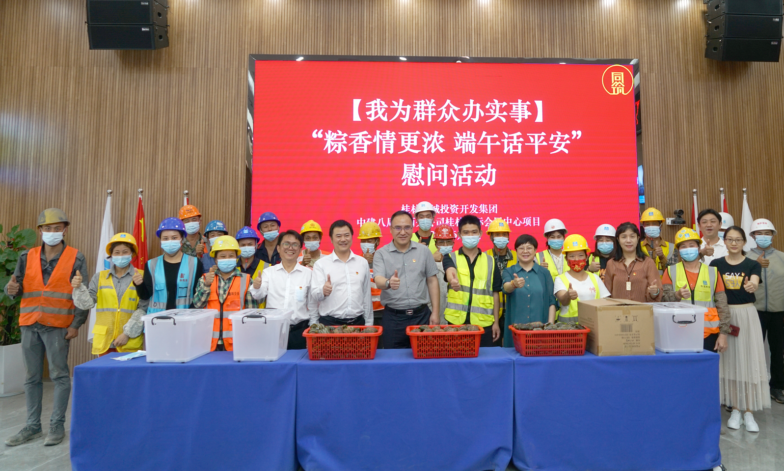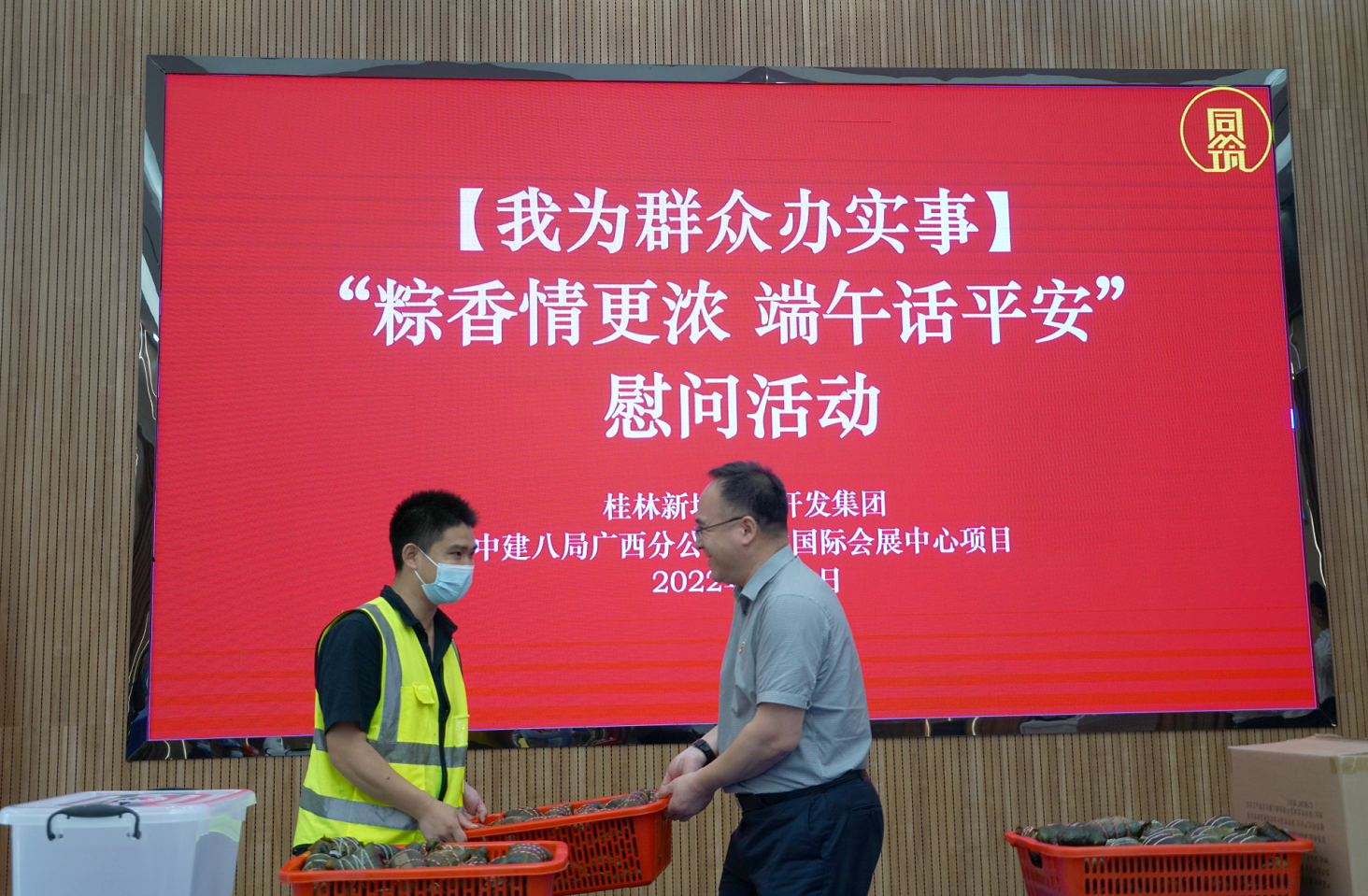 隨后,慰問組來到桂林國際會展中心項(xiàng)目開展慰問活動,提前向奮斗在一線無法回家過節(jié)的工人致以節(jié)日的問候。黃峻叮囑大家要增強(qiáng)“我要安全、我會安全”的責(zé)任意識,確保施工安全,保質(zhì)保量的完成項(xiàng)目建設(shè),以優(yōu)異成績喜迎二十大的勝利召開。