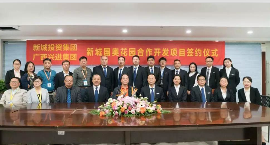 10月11日,桂林新城投資開發(fā)集團(tuán)有限公司與廣西興進(jìn)實(shí)業(yè)集團(tuán)有限責(zé)任公司在新城投資集團(tuán)15樓會(huì)議室舉行新城國奧花園合作開發(fā)項(xiàng)目簽約儀式。桂林市臨桂新區(qū)管委會(huì)副主任覃正東出席并見證簽約,桂林新城投資開發(fā)集團(tuán)有限公司總裁周道林,廣西興進(jìn)實(shí)業(yè)集團(tuán)有限責(zé)任公司董事長羅欣分別代表雙方在合作協(xié)議書上簽字。