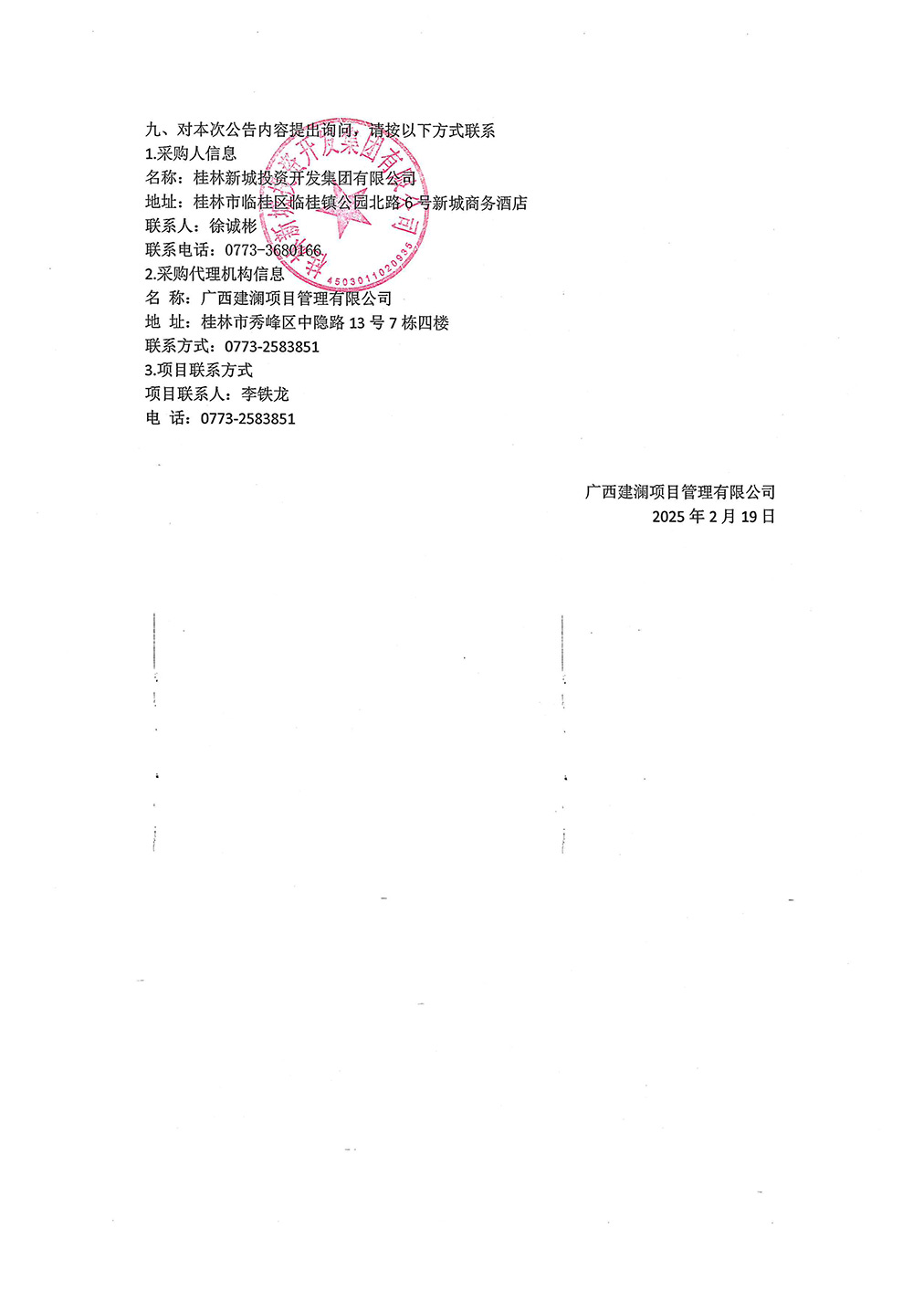 廣西建瀾項目管理有限公司關(guān)于2025年交易商協(xié)會債券承銷服務項目(項目編號:GXJLGL2024-G3-1202)中標結(jié)果公告