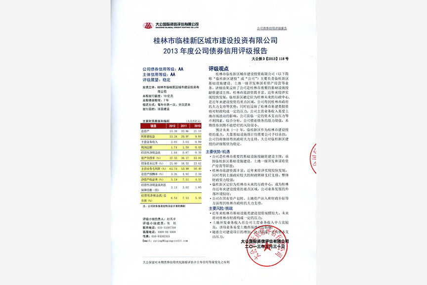 桂林新城投資開發(fā)集團有限公司成立于2009年3月26日,是經(jīng)桂林市人民政府批準成立的國有獨資有限責任公司,公司注冊資本9億元。公司以臨桂新區(qū)開發(fā)建設(shè)為主導,按照市場配置原則,進行資本運作和投資經(jīng)營,涉及城市基礎(chǔ)設(shè)施建設(shè)、房地產(chǎn)開發(fā)、物資貿(mào)易、廣告?zhèn)髅?、教育、航空、旅游、酒店?jīng)營、政府特許經(jīng)營業(yè)務(wù)等投資領(lǐng)域。擁有全資子公司9家,參股公司8家。